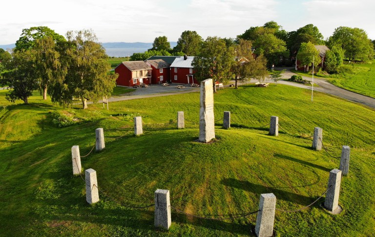 Vi sjekker ut fra hotellet og vender nesa sørvestover langs Trondheimsfjorden i retning Frosta. Ved Ekne i Levanger besøker vi Falstadsenteret. Senteret ligger i det som en gang var fangeleiren Falstad, og under omvisning her får vi høre om fangehistorier fra andre verdenskrig, men også om demokrati, menneskerettigheter og dagsaktuelle samfunnsspørsmål. Omvisningen omfatter også besøk i Falstadskogen.